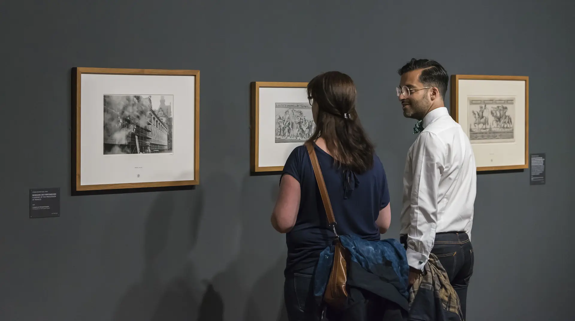Schließlich ist die unerschöpfliche Welt der reproduktiven Künste zu entdecken. Sie reicht vom Holzschnitt des 15. Jahrhunderts bis zum Offsetdruck und zur Fotografie. Sei es durch den Zufall des Erhalts, individuelle Überarbeitungen oder innovative Techniken, jedes Werk ist einzigartig. Den abschließenden Höhepunkt bildet der raumsprengende Karton des Dresdner Fürstenzuges, Inbegriff eines Unikats von höchster Seltenheit und Produktionsgrundlage für die Ikone sächsischer Porzellanmalerei.