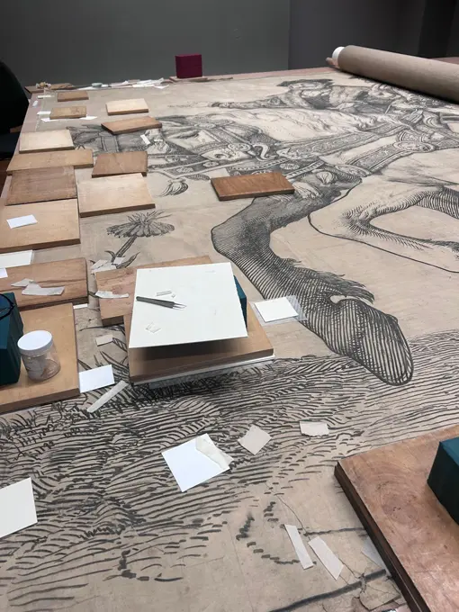 Anhand von Kunstwerken aus sieben Jahrhunderten erhalten Besucher*innen einen Überblick über die restauratorische Praxis und ein Berufsbild im Wandel. Unter den Stichworten „Papier“, „Licht“, „Wasser“ und „Zeit“ präsentiert die Schau zum Teil noch nie gezeigte Zeichnungen und Grafiken der über 500.000 Werke umfassenden Sammlung. Die vier Kapitel geben im Wechselspiel unterschiedlicher Präsentationsmedien wie Videos, Text-Bild-Collagen und Kunstwerken Einblick in die Facetten der Restaurierung, die als zentraler Teil der Museumsarbeit meist hinter den Kulissen stattfindet.