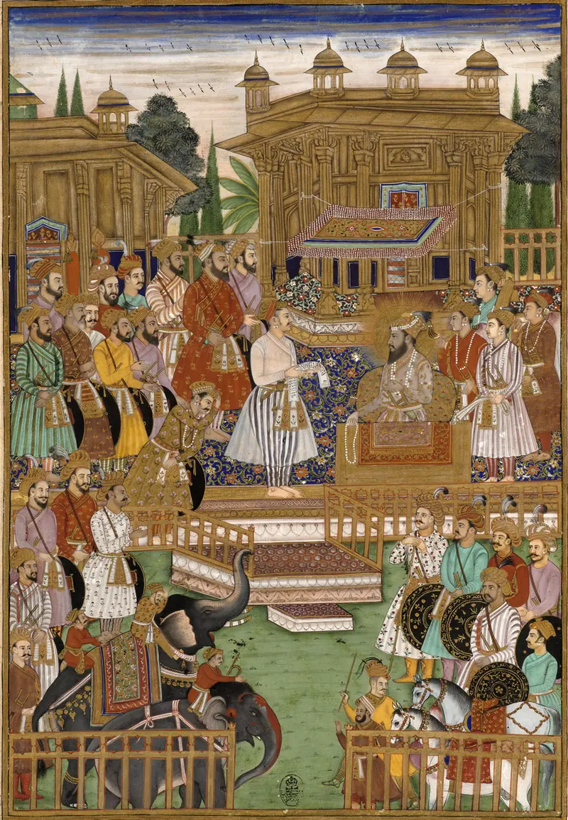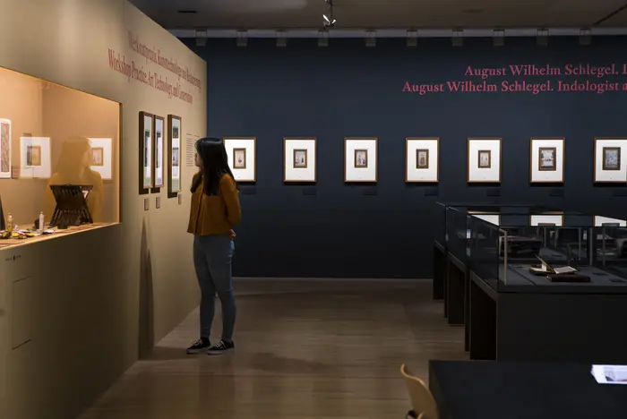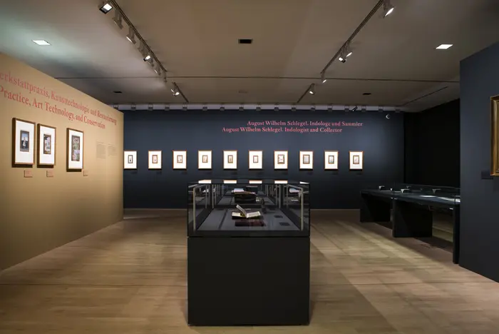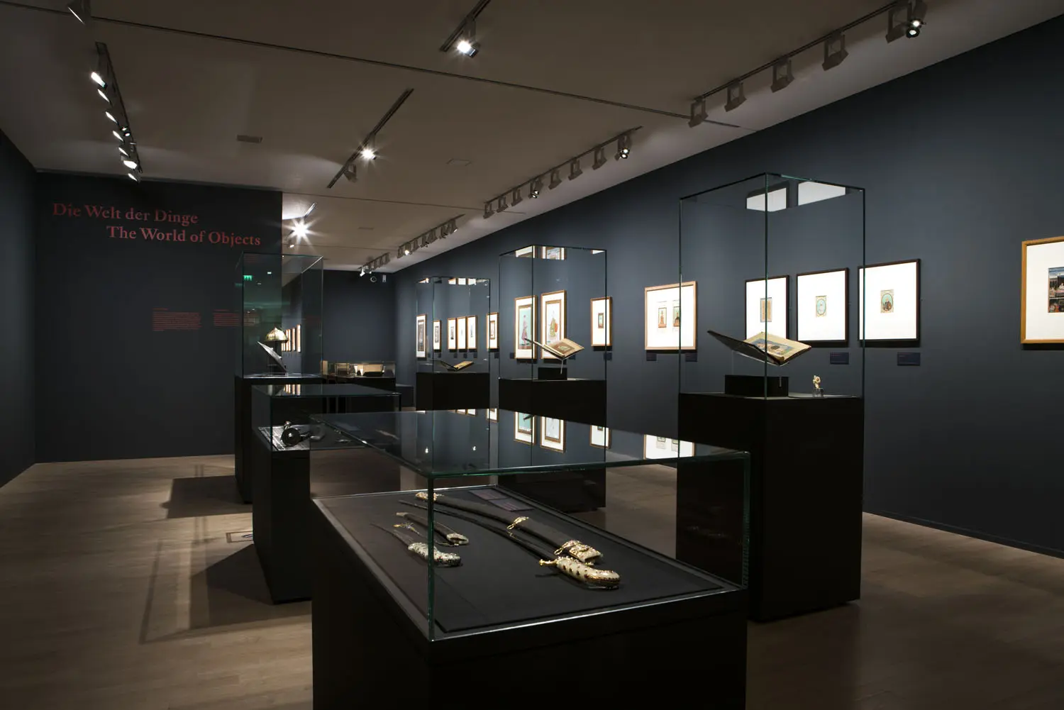 Ein Sammlungsschwerpunkt umfasst Genealogien berühmter indischer Herrscher, die in Alben (muraqqa) gesammelt wurden, von denen eines noch im Original erhalten ist. Daneben finden sich farbenfrohe Empfangsszenen am Hofe (darbar), Löwenjagden und Haremsschilderungen sowie Besuche bei geistigen Lehrern (darshan). Der Szenenaufbau folgt oft einer komplexen Logik, bei der Betrachtung, Inhalt und Machart des Gemäldes spannungsreich verschränkt werden. Die Ausstellung lädt dazu ein, diesem fesselnden Seherleben nachzuspüren und die Objekte, die in den Miniaturen zu entdecken sind, mit kunsthandwerklichen Leihgaben aus renommierten Sammlungen in Beziehung zu setzen. Die werkstattpraktische Herstellung der Miniaturen mit spezifischen Techniken der Papierherstellung, Schreib-, Zeichen- und Übertragungstechniken wird - in Zusammenschau mit restauratorischen Ergebnissen - gleichfalls nachvollziehbar.