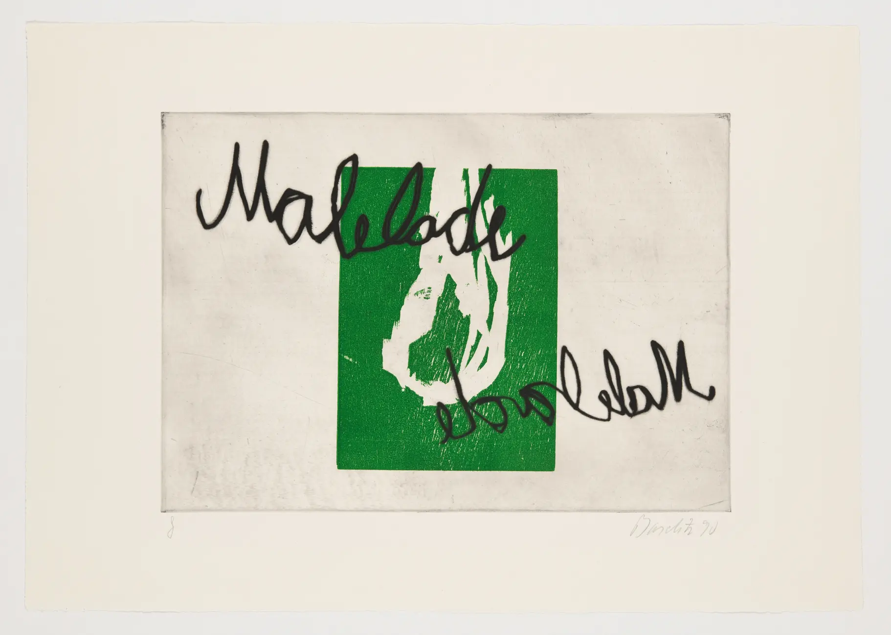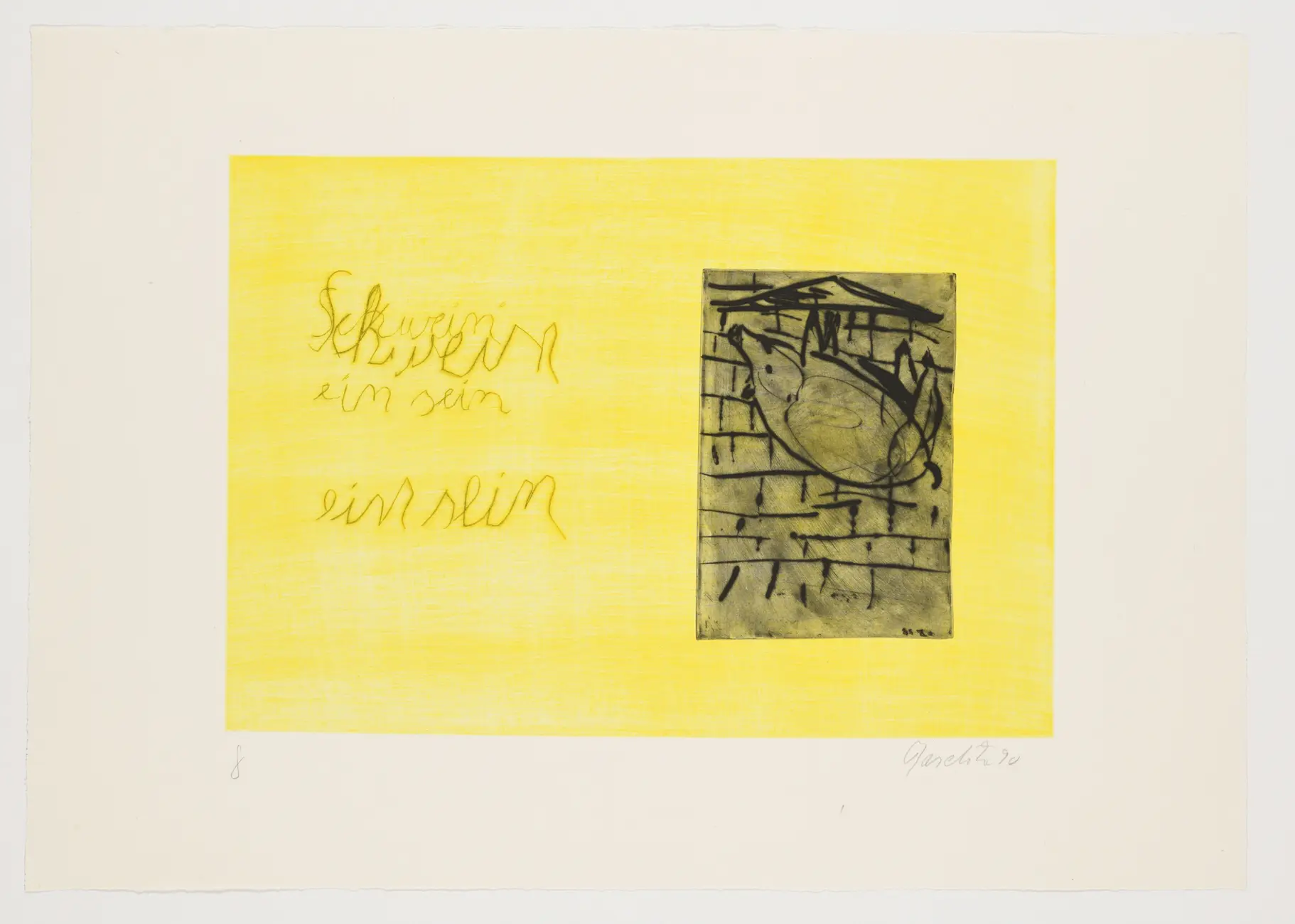 Printmaking in its many forms is celebrated in radical images: woodcuts by Werner Büttner and Hubert Kiecol, Anselm Kiefer, Gustav Kluge, and Carsten Nicolai; etchings by Horst Antes, Georg Baselitz, David Hockney, Wilhelm Lehmbruck, and A. R. Penck; lithographs by Robert Mangold and Hermann Nitsch. Selected works and drawings by Monika Grzymala, Jenny Holzer, and Tomas Schmit broaden the display of graphic works.