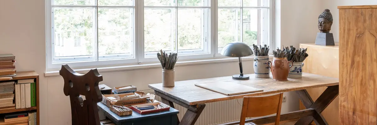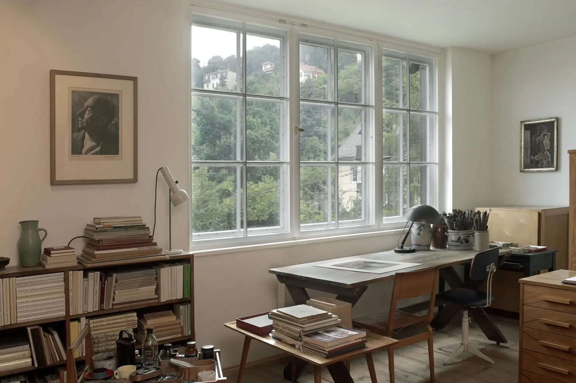 Today the ink in the little glass bottles in his studio has long dried out, but aside from that, his living and working spaces at 2 Calberlastraße, in Dresden’s Loschwitz district have hardly changed at all since his death: Alongside countless illustrated books and Hegenbarth’s drawing utensils, the desk where he worked still stands with a view of the Elbe slope in Loschwitz. It was his widow Johanna Hegenbarth who bequeathed the artist’s estate to the Kupferstich-Kabinett – under the condition that it be made accessible to the public.
