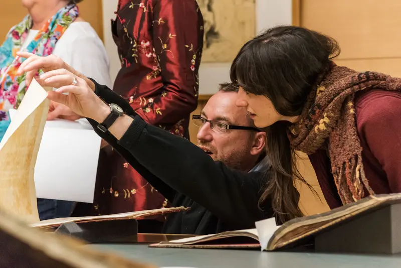 Neben dem persönlichen Studieren und Entdecken unserer Kunstwerke, wird der Studiensaal auch gern von Gruppen besucht. Möglich sind unter anderem Workshops, wie das Zeichnen vor Originalen, Vorträge oder Besuche für Schulklassen, Studierende oder jegliche interessierte Gruppen.